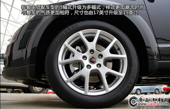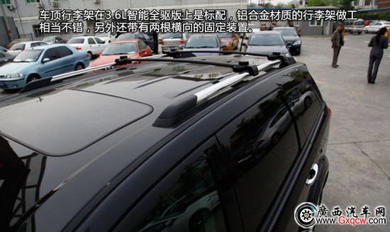 輪轂由低配車型的5幅式升級為多幅式,樣式更加潮流時尚,與整車的氣質(zhì)更加相符,尺寸也由17英寸升級至19英寸。車頂行李架在3.6L智能全驅(qū)版以及2.4L豪華導航版上是標配的,鋁合金材質(zhì)的行李架做工不錯,另外還帶有兩根橫向的固定裝置。