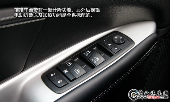 前排車窗帶有一鍵升降功能,另外后視鏡折疊以及加熱功能是全系標(biāo)配的。