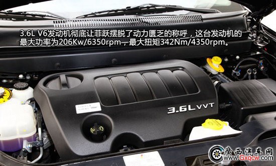 實拍車型搭載了一臺3.6L V6發(fā)動機,最大功率206Kw/6350rpm,最大扭矩342Nm/4350rpm,讓菲躍徹底擺脫了動力匱乏的稱呼。與之匹配的仍是6速手自一體變速箱。