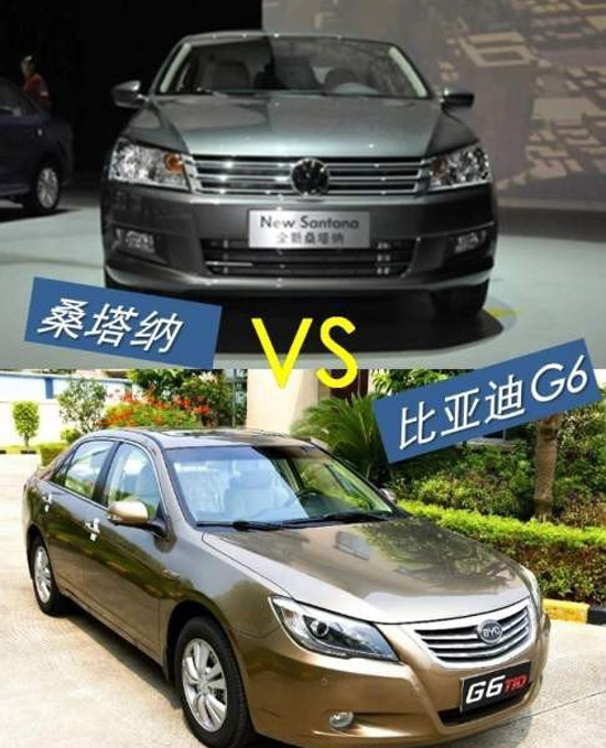 10萬元一直是很多消費者購車的預(yù)算節(jié)點。在這個區(qū)間,消費者可選擇合資品牌緊湊車或自主品牌中級車,車型很多,也因此很多人左挑右選,卻沒能買到中意的車型。進入中國市場20年之久的老牌明星車桑塔納,不僅贏得了銷量,更獲得了不錯的市場口碑,一度成為一個時代的代名詞。2011年9月上市的比亞迪G6也以其獨有的動力配置和超高的性價比,俘獲了不少國人的心,成了當(dāng)仁不讓的自主中級車銷量王。今天,就讓我們來對比一下這兩款不同出生的車型,看看他們各自的優(yōu)勢分別在哪里。