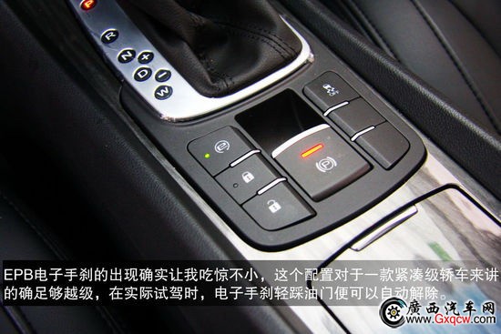 EPB電子手剎的出現(xiàn)確實讓我吃驚不下,這個配置對于一款緊湊級轎車來講的確已經(jīng)足夠越級,在實際試駕時,電子手剎在輕踩油門的情況下便可以自動解除,這對于可能會忘記松手剎的朋友來講絕對是一個福音。