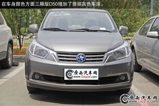 外觀方面新款車(chē)型增加了后尾翼,在提升運(yùn)動(dòng)元素的同時(shí)也優(yōu)化了風(fēng)阻系數(shù),同時(shí)在車(chē)身顏色方面三廂版D50增加了翡麗灰色車(chē)漆。外觀其余方面,與2012款車(chē)型保持一致。