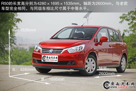 車(chē)身尺寸方面與老款車(chē)型無(wú)異,R50的長(zhǎng)寬高分別為4280×1695×1535mm,軸距為2600mm。三廂的D50僅在車(chē)長(zhǎng)方面增加了200mm,達(dá)到了4480mm,其余尺寸與R50相同。在車(chē)身尺寸方面,D50和R50表現(xiàn)還算中規(guī)中矩,實(shí)際內(nèi)部空間我們將在下頁(yè)展示,其表現(xiàn)很是驚人。