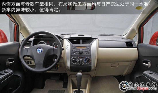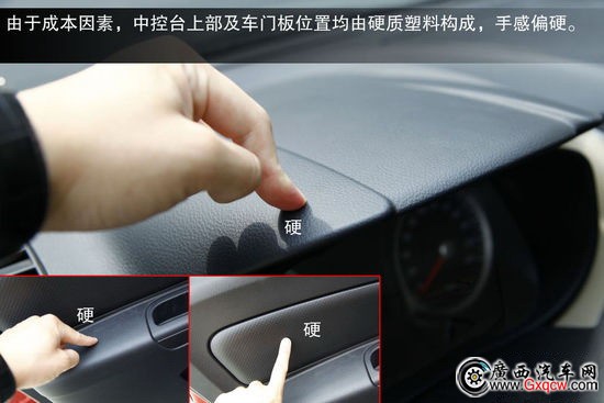 內(nèi)飾方面與老款車(chē)型相同,整體布局和做工方面均與日產(chǎn)騏達(dá)處于同一水平。只是由于成本因素,中控臺(tái)上部及車(chē)門(mén)板位置均由硬質(zhì)塑料構(gòu)成,手感偏硬。不過(guò)板材接縫很均勻,同時(shí)盡管這臺(tái)試駕車(chē)是新車(chē),但車(chē)內(nèi)異味較小,可以看出作為合資自主的R50這在方面很有優(yōu)勢(shì)。