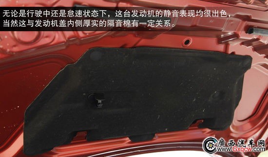 無(wú)論是行駛中還是怠速狀態(tài)下,這臺(tái)發(fā)動(dòng)機(jī)的靜音表現(xiàn)均很出色,當(dāng)然這與發(fā)動(dòng)機(jī)蓋內(nèi)側(cè)厚實(shí)的隔音棉有一定關(guān)系。