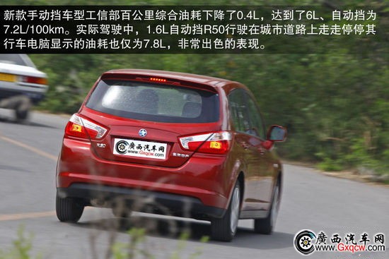 經(jīng)過(guò)多方面的升級(jí),新款手動(dòng)擋車(chē)型工信部百公里綜合油耗下降了0.4L,達(dá)到了6L、自動(dòng)擋為7.2L/100km。實(shí)際駕駛中,1.6L自動(dòng)擋R50行駛在城市道路上走走停停其行車(chē)電腦顯示的油耗也僅為7.8L,非常出色的表現(xiàn)。