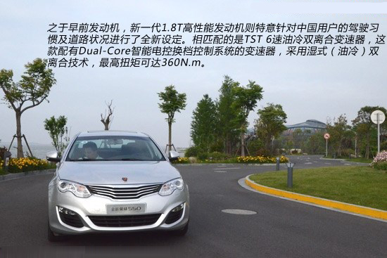 全新榮威550依舊配備兩款動(dòng)力:1.8T渦輪增壓發(fā)動(dòng)機(jī)和1.8L自然吸氣發(fā)動(dòng)機(jī)。此次試駕車(chē)型是1.8T版本,之于早前的發(fā)動(dòng)機(jī),新一代1.8T高性能發(fā)動(dòng)機(jī)則特意針對(duì)中國(guó)用戶的駕駛習(xí)慣及道路狀況進(jìn)行了全新設(shè)定,渦輪增壓系統(tǒng)介入時(shí)間調(diào)整至2000轉(zhuǎn)。與1.8T渦輪增壓發(fā)動(dòng)機(jī)相匹配的是TST6速油冷雙離合變速器,這款配有Dual-Core智能電控?fù)Q檔控制系統(tǒng)的變速器,采用濕式(油冷)雙離合技術(shù),換擋響應(yīng)時(shí)間更短,動(dòng)力效能更高,最高扭矩可達(dá)360N.m。