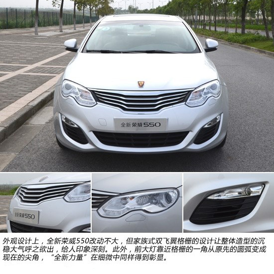 外觀設(shè)計上,全新榮威550改動不大,但家族式雙飛翼格柵的設(shè)計讓整體造型的沉穩(wěn)大氣呼之欲出,給人印象深刻。此外,前大燈靠近格柵的一角從原先的圓弧變成現(xiàn)在的尖角,“全新力量”在細(xì)微中同樣得到彰顯。