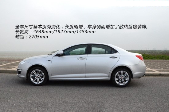 全車尺寸基本沒有變化,長度略增,車身側(cè)面增加了散熱鍍鉻裝飾。
