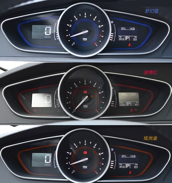 之前的各種宣傳,讓我毫無疑問地將焦點首先落在了儀表盤的色彩調(diào)節(jié)上,通過中控屏幕上的操作提示,儀表盤的背景光可變換三種顏色:夢幻藍(lán)、激情紅、炫光金,個性化地配合駕駛狀態(tài)和駕駛環(huán)境。不過在白天,激情紅和炫光金區(qū)分不是很明顯,夜幕降臨后應(yīng)該會更酷!