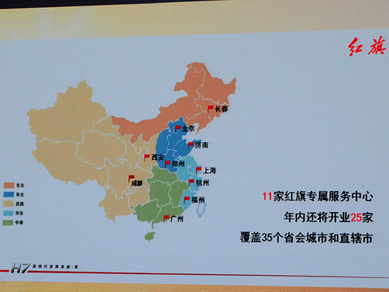 在提高產(chǎn)品競爭力的同時(shí),一汽紅旗把服務(wù)競爭力也提到了戰(zhàn)略高度。為了給廣大用戶提供高品質(zhì)的服務(wù),紅旗按照高檔轎車品牌的標(biāo)準(zhǔn)建設(shè)經(jīng)銷商網(wǎng)絡(luò):目前已經(jīng)在北京、上海、廣州、長春、濟(jì)南、鄭州、杭州、福州、西安等9座核心城市,成功建設(shè)了紅旗城市展館—“紅館”, 紅旗H7上市后,還將有12家“紅館”陸續(xù)建成;同時(shí),為了保證客戶能夠獲得高品質(zhì)的服務(wù),紅旗已經(jīng)在紅館所在城市建成11家紅旗專屬服務(wù)中心,陸續(xù)還將有25家紅旗專屬服務(wù)中心開業(yè),完成對(duì)全國35個(gè)省會(huì)城市和直轄市的覆蓋。
