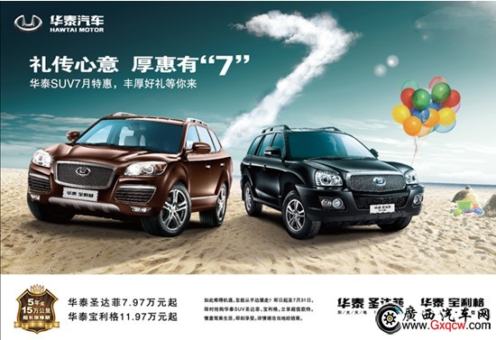 南寧的酷暑夏日,你準備好了么?7月活動多多, 18日-21日廣西第二屆國際汽車文化節(jié),華泰汽車與您相約南寧國際會展中心11號館。年中鉅惠,禮傳心意,厚惠有“7”!華泰SUV7月特惠,豐厚好禮等你來!此外,寶利格1.8T自動擋將攜手路盛E70亮相車展現(xiàn)場,訂、購車客戶將有神秘大禮抱回家,到展位品鑒賞車客戶均有精美禮品贈送,全系再度無底線回饋新老客戶!詳詢:0771-3801127 地址:南寧市安吉路41號廣西汽車市場內(nèi)