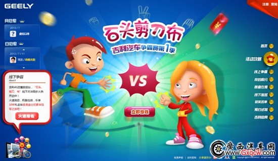 直接用新浪/騰訊微博、人人網(wǎng)、豆瓣網(wǎng)賬號(hào)登錄即可參加比賽。活動(dòng)網(wǎng)址:http://promotion.geely.com/topic/ge/stjdb/