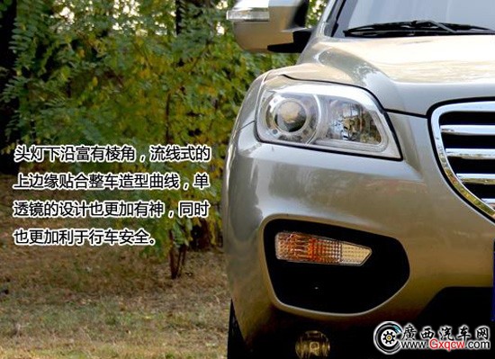 力帆X60的外觀給人耳目一新的感覺,擺脫了自主車型效仿、模仿的痕跡,突出了自己的品牌形象。盾形鍍鉻中網(wǎng)顯得大氣、粗狂,為整體車身的硬朗氣質(zhì)加了不少分?jǐn)?shù)。頭燈下沿富有棱角,流線式的上邊緣貼合整車造型曲線,單透鏡的設(shè)計(jì)也更加有神,同時也更加利于行車安全。