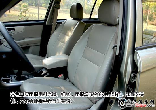 力帆X60在座椅方面也是下了不少功夫。米色真皮座椅用料光滑、細膩,座椅填充物的硬度剛好,既有支持性,又不會使乘坐者有生硬感。