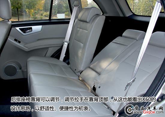 后排座椅靠背可以調(diào)節(jié),調(diào)節(jié)拉手在靠背頂部,從這也能看出X60的設(shè)計思路,以舒適性、便捷性為初衷。