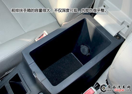 中控區(qū)域的儲物空間豐富,共設(shè)有有三個小型儲物格,手套箱容積一般,但形狀較為規(guī)整,有利于存放物品。前排扶手箱的容量很大,不僅深度可觀,內(nèi)部也很平整。