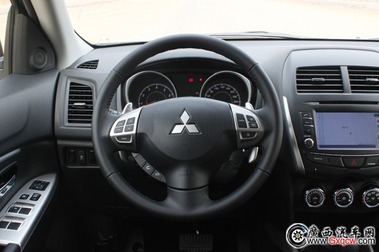 ASX勁炫的內(nèi)飾十分的簡(jiǎn)潔,以年輕人喜歡的黑色作為主色調(diào)更顯年輕時(shí)尚。三幅方向盤(pán)加上炮筒式的儀表盤(pán),運(yùn)動(dòng)感和科技感相融合。中控臺(tái)設(shè)計(jì)也很簡(jiǎn)潔,沒(méi)有太多復(fù)雜的按鍵,易上手。做工和用料的表現(xiàn)都還算不錯(cuò)。2670mm的軸距導(dǎo)致內(nèi)部空間不能算太寬裕,但是也夠用了。