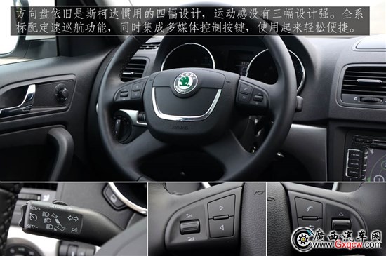 方向盤依舊是斯柯達(dá)慣用的四幅設(shè)計(jì),運(yùn)動(dòng)感沒有三幅設(shè)計(jì)強(qiáng)。配備四向調(diào)節(jié)功能,同時(shí)集成多媒體按鍵(左側(cè)為音量以及多媒體按鍵,右側(cè)是車載藍(lán)牙和行車電腦顯示屏控制按鍵),讓車主駕駛起來更加輕松便捷。只是低配版沒有配備多功能方向盤讓人難以理解。