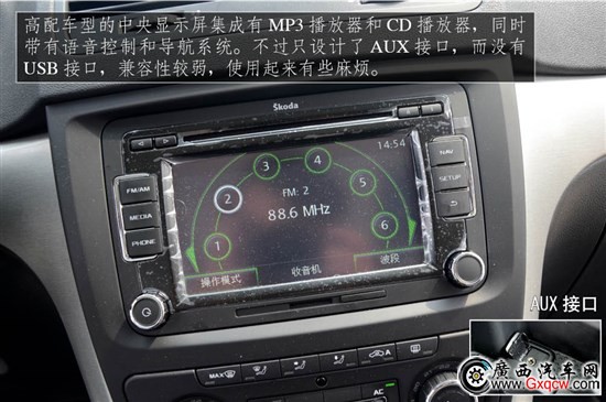 中控多媒體顯示屏也是大眾的哪套,只是標(biāo)志不同而已。高配車型集成有MP3播放器和CD播放器,同時(shí)帶有語音控制和導(dǎo)航系統(tǒng)。不過只設(shè)計(jì)了AUX接口,而沒有設(shè)計(jì)USB接口,兼容性較弱,使用起來有些麻煩。