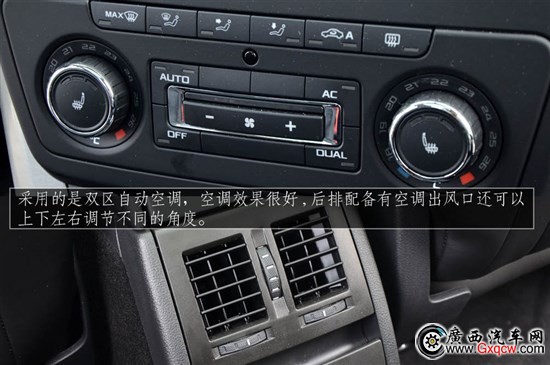 采用的是雙區(qū)自動(dòng)空調(diào),對(duì)于進(jìn)口車型來說沒有什么可意外的,空調(diào)效果也很好。后排配備有空調(diào)出風(fēng)口還可以上下左右調(diào)節(jié)不同的角度。