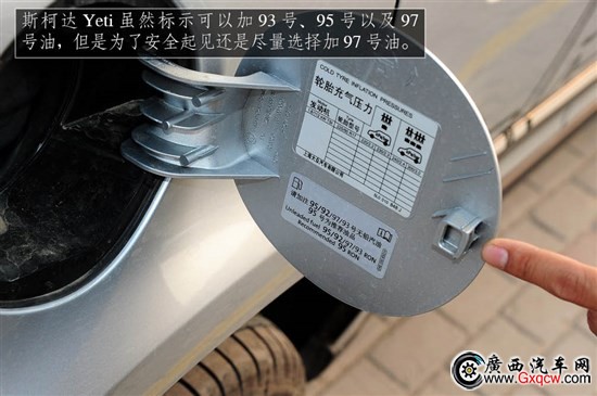 斯柯達(dá)Yeti雖然標(biāo)示可以加93號(hào)、95號(hào)以及97號(hào)油,但是為了安全起見(jiàn)還是盡量選擇加97號(hào)油。