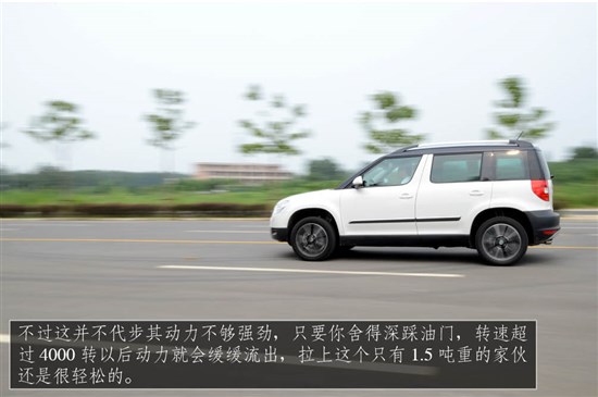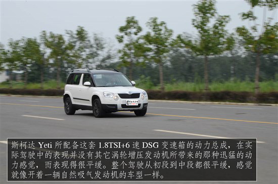 斯柯達(dá)Yeti所配備這套1.8TSI+6速DSG變速箱的動(dòng)力總成,在實(shí)際駕駛中的表現(xiàn)并沒(méi)有其它渦輪增壓發(fā)動(dòng)機(jī)所帶來(lái)的那種迅猛的動(dòng)力感覺(jué),而表現(xiàn)得很平緩。整個(gè)駕駛從初段到中段都很平緩,感覺(jué)就像開著一輛自然吸氣發(fā)動(dòng)機(jī)的車型一樣。