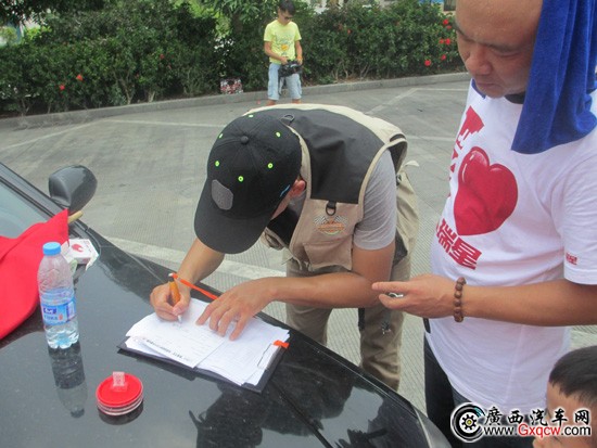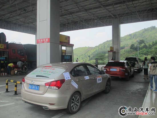 節(jié)油賽起始點(diǎn)設(shè)置在發(fā)達(dá)服務(wù)區(qū),由南寧銘典工作人員對(duì)參賽車(chē)輛統(tǒng)一加滿油到第一次跳槍,貼上封條,到珠街服務(wù)區(qū)揭開(kāi)封條再補(bǔ)加滿油到第一次跳槍的方法,折算成百公里油耗計(jì)算本次比賽用油成績(jī),評(píng)判出本次比賽的前三名“節(jié)油王”。最后,車(chē)主舒亮先生駕駛的東南V6菱仕COCO版以百公里油耗5.5升的成績(jī)摘取了本次“節(jié)油王”冠軍,拿到了節(jié)油賽冠軍獎(jiǎng)金和獎(jiǎng)杯。