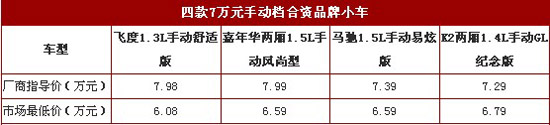 在7萬元以內的兩廂小車,作為日常代步的交通工具。要求是合資品牌車型,造型年輕時尚,空間夠大實用,省油好開的手動檔,功能配置滿足基本需求即可。那么我們可以大概的篩選。