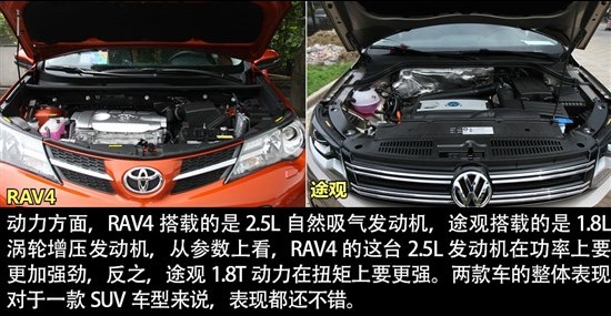 我們今天所對比的兩款車型分別為豐田RAV4 2013款 2.5L 自動四驅尊貴版和途觀 2013款 1.8TSI 自動四驅豪華型兩款車型。