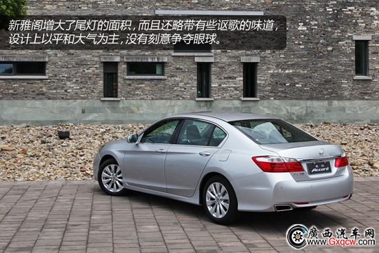 外觀(guān)方面,新車(chē)基于北美版新雅閣設(shè)計(jì),細(xì)節(jié)上進(jìn)行了一些針對(duì)國(guó)產(chǎn)化的處理,例如,新的三橫式鍍鉻裝飾條更為寬大,顯得“霸氣”十分,LED大燈與日間行車(chē)燈設(shè)計(jì)更加規(guī)整,霧燈設(shè)計(jì)也更加飽滿(mǎn)圓潤(rùn)。另外,國(guó)產(chǎn)車(chē)型采用嵌入式排氣管設(shè)計(jì),矩形排氣管口較海外版來(lái)得整體感更強(qiáng)。整體上,新車(chē)設(shè)計(jì)更富有年輕俊朗氣息。