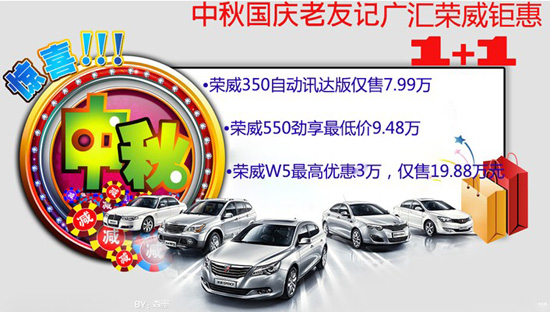 2013年9月19-21日,廣西弘威為迎接中秋,回饋更多新老客戶,推出中秋國慶老友記•廣匯榮威鉅惠1+1方案,優(yōu)惠詳細如下: