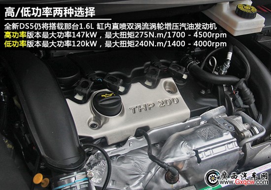 動力方面,國產(chǎn)DS5將搭載1.6THP發(fā)動機(jī),低功率版最大功率120kW(163Ps),最大扭矩240Nm;高功率版最大輸出功率147kW(200Ps),最大扭矩275Nm。傳動系統(tǒng)采用6速手自一體變速箱。