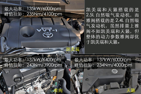 雅閣的排量雖然沒有凱美瑞和天籟大,但動力參數(shù)是三款車里最高的,凱美瑞配備的6速自動變速器在燃油經(jīng)濟性上不如雅閣和天籟的CVT無級變速器。底盤調(diào)教上,雅閣偏硬,天籟偏軟,凱美瑞比較均衡。
