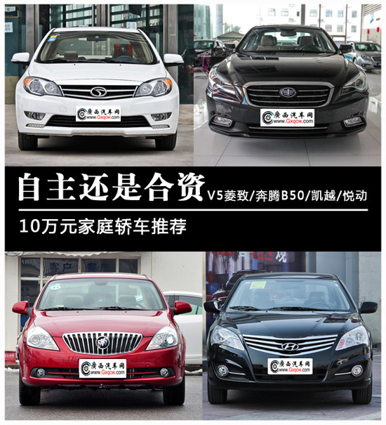 成交價10萬元相信是很多第一次購車的消費者所作出的預算,而往往實用的家庭轎車會比較受歡迎,三廂的A級車最符合條件同時也擁有更多的選擇。隨著自主品牌越來越得到認可,改變了過往國內(nèi)市場合資品牌獨大的格局。本文我們選取了V5菱致、奔騰B50、凱越和悅動這四款車型進行對比,分析這幾款車型的各自特點。