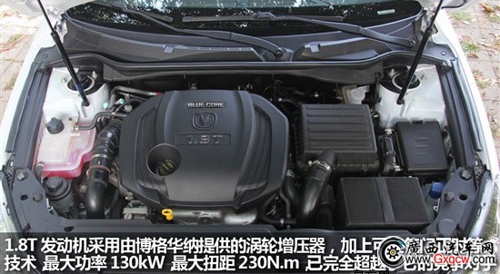 睿騁配備了兩款發(fā)動機(jī),分別是2.0升自然吸氣和1.8升渦輪增壓,前者最大功率116kW,最大扭距200N.m;后者則是今天我們的主角。1.8T發(fā)動機(jī)采用由博格華納提供的渦輪增壓器,加上可變氣門正時等技術(shù),最大功率130kW,最大扭距230N.m,已經(jīng)完全超越了它的競爭對手,無論是合資還是自主品牌。