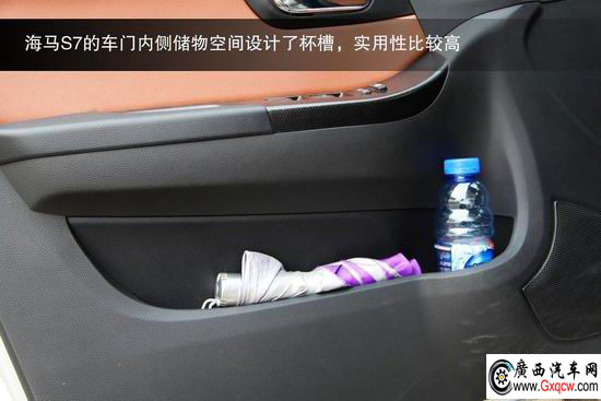 海馬S7的手套箱內(nèi)部空間還算比較大,主要是內(nèi)部深度合適,可以放下很多隨車物品;海馬S7的前排中央扶手設(shè)計(jì)了比較深的儲(chǔ)物空間,水杯水瓶等物品可以輕松放入;海馬S7的車門內(nèi)側(cè)儲(chǔ)物空間設(shè)計(jì)了杯槽,實(shí)用性比較高。