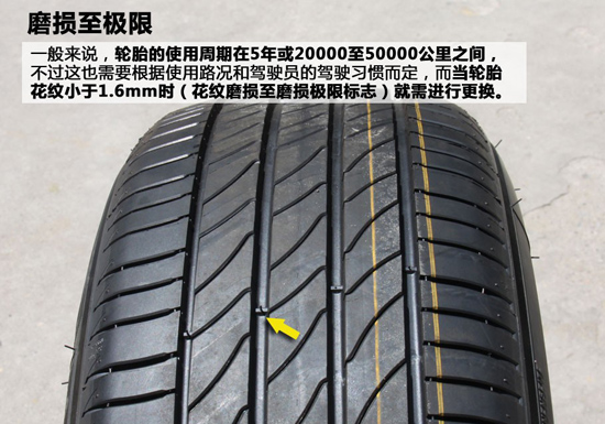按照普遍的說(shuō)法,輪胎的使用周期為5年或20000—50000公里,這其實(shí)跟駕駛員的駕車(chē)習(xí)慣及路況有很大關(guān)系,經(jīng)常跑高速、猛起步,輪胎氣壓不正常都會(huì)降低輪胎的使用壽命。而當(dāng)輪胎花紋深度小于1.6mm,輪胎胎側(cè)破損或鼓包時(shí)則需要立即更換輪胎以確保駕駛安全。