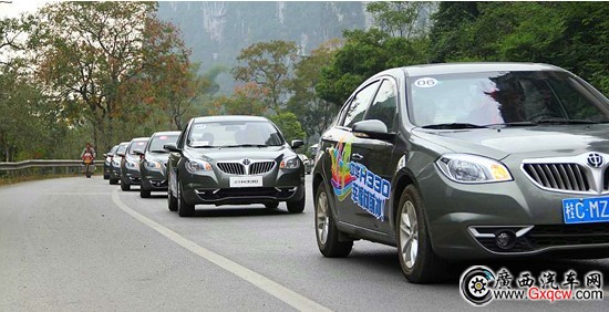 桂林至陽朔,80多公里的路程,十余輛中華H330組成的幸福車隊(duì)在正午的陽光下亮起警示燈,揚(yáng)著中華家族式帥氣前臉,帶著頂級設(shè)計(jì)公司賓尼法利納賦予的國際風(fēng)范,“沖”上了穿梭在群山間的包茂高速。