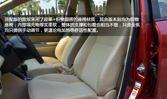頂配版的致炫采用了皮革+織物混搭的座椅材質(zhì),其余版本則均為織物座椅;內(nèi)部填充物厚實柔軟,整體的支撐和包覆也相當不錯,只是全系均只提供手動調(diào)節(jié),更遑論電加熱等舒適性配置。