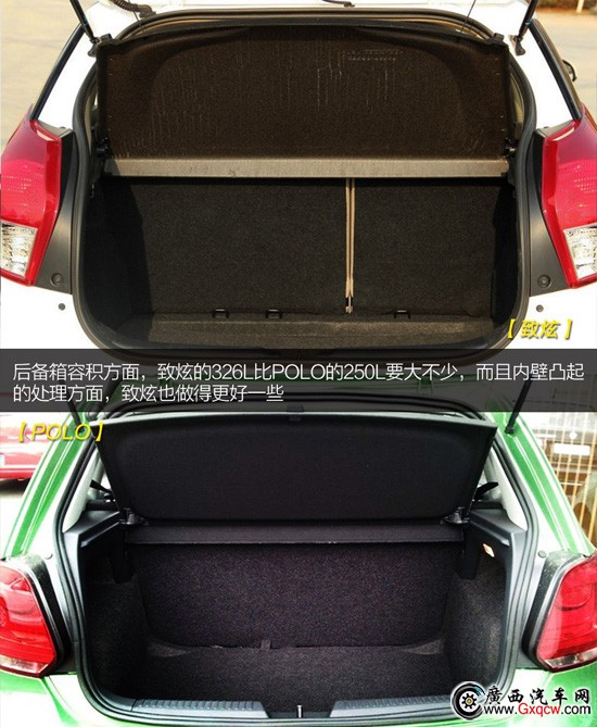 致炫與POLO的儲(chǔ)物空間都比較豐富,前排儲(chǔ)物兩款車型差不多,不過(guò)后排儲(chǔ)物致炫就不及POLO了,致炫只有一個(gè)可放水杯的地方,而POLO除了有放水杯的地方,后門板還有一個(gè)儲(chǔ)物槽,雖然比較窄,但還是可以放小一些如錢包、報(bào)紙、雜志等物品。
