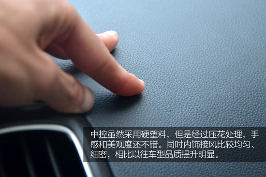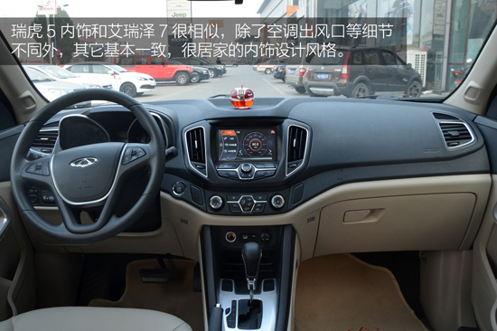 瑞虎5的內(nèi)飾與艾瑞澤7也非常相像,整體造型精致,布局簡潔合理,層次感很強。上深下淺的配色帶來了濃厚的家居氣息,消費者的可接受度很高。在做工和材質(zhì)方面也有不錯的表現(xiàn),細節(jié)加工工藝處理得當,整體水平與一些合資車相當。