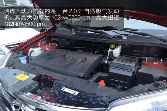 瑞虎5全系搭載了一臺2.0L DVVT 自然吸氣發(fā)動機,最大功率102kw/5700rpm,最大扭矩182N·m/4500rpm,后期奇瑞有可能會推出搭載1.6T發(fā)動機的車型。傳動方面,與發(fā)動機搭配的是5速手動與CVT無級自動兩種變速箱。