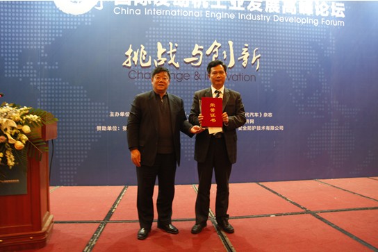 (廣汽乘用車副總經(jīng)理古惠南接過“動力中國2013年度發(fā)動機獎”)