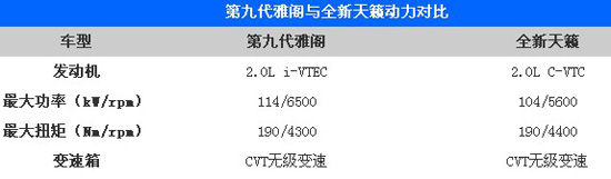 九代雅閣對(duì)比全新天籟