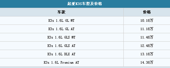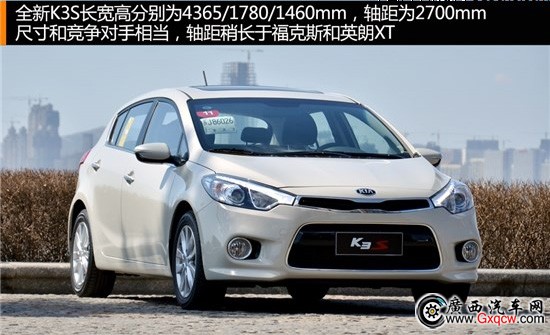 2014年4月10日,起亞K3的兩廂版車型起亞K3S正式上市了。起亞K3S為我們帶來了全新的形象,有些形似前不久上市的速邁。時(shí)尚動(dòng)感的外形、高標(biāo)準(zhǔn)的功能配備當(dāng)然能為起亞K3S帶來不錯(cuò)的銷量,但是若想與別克、福特以及大眾這些品牌相比,起亞還需提升其品牌價(jià)值和產(chǎn)品整體質(zhì)感。新車共推出了1.6L一個(gè)排量共6款車型,售價(jià)區(qū)間:10.18-14.38萬。