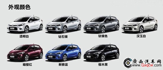 K3S根據(jù)車型的不同將有多達(dá)7種車身顏色可選,分別是透明白、鉆石銀、鈦銀色、漢玉白、暗櫻紅、新雅藍(lán)以及檀木黑。