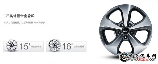 新車提供了15寸、16寸以及17寸三種尺寸的鋁合金輪轂,其中15寸輪轂應(yīng)用在兩款低配的GL車型上,而17寸輪轂則只有頂配的Premium車型有采用,其余均使用16寸鋁合金輪轂。