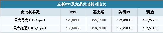 動(dòng)力方面,K3S搭載的是1.6L自然吸氣發(fā)動(dòng)機(jī),最大功率為128馬力,最大扭矩達(dá)到156N·m,傳動(dòng)方面,與發(fā)動(dòng)機(jī)匹配的是6速手動(dòng)和6速自動(dòng)變速箱。其中6速手自一體變速箱帶有學(xué)習(xí)功能,可根據(jù)駕駛者的駕駛習(xí)慣進(jìn)行換擋時(shí)機(jī)的完善,充分領(lǐng)悟駕駛者意圖。