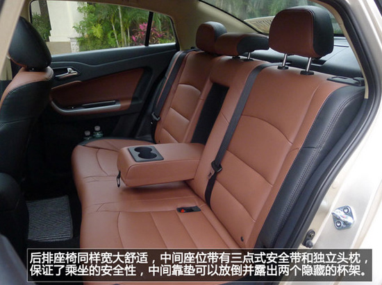 后排座椅同樣寬大舒適,中間座位帶有三點式安全帶和獨立頭枕,保證了乘坐的安全性,中間靠墊可以放倒并露出兩個隱藏的杯架。